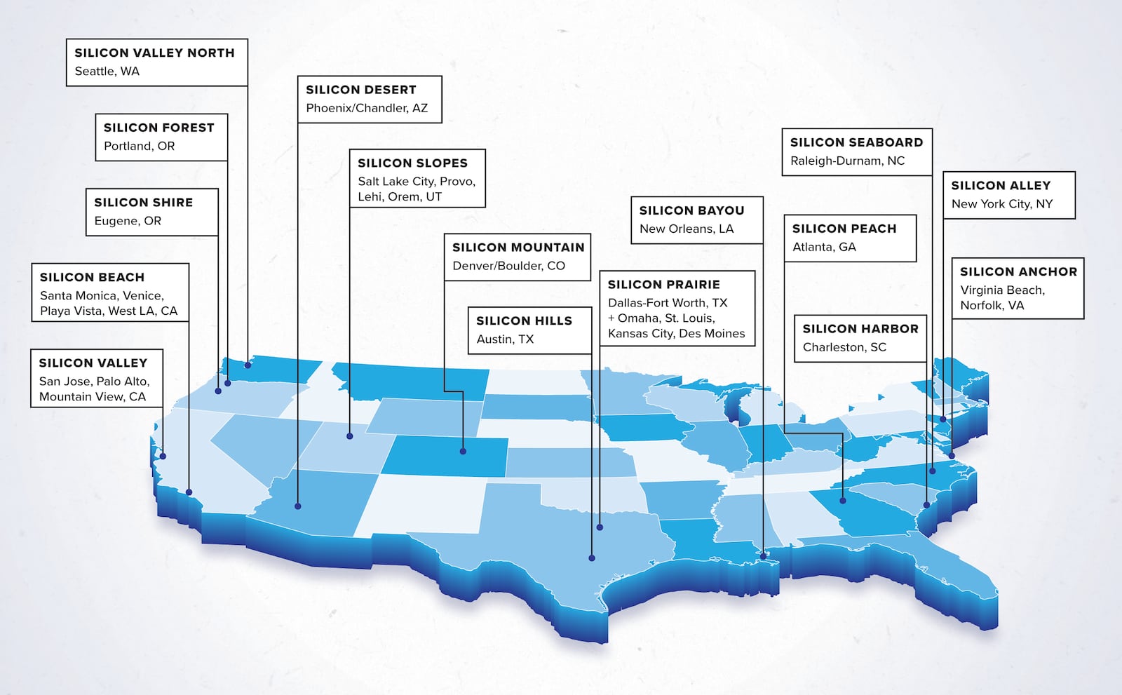 Communities across the country are investing billions to become the next Silicon Valley: Austin’s Silicon Hills, Phoenix’s Silicon Desert, Oregon and Washington’s Silicon Forest, and Utah’s own Silicon Slopes. Some have the resources to pull it off, while others may be better off taking another path.